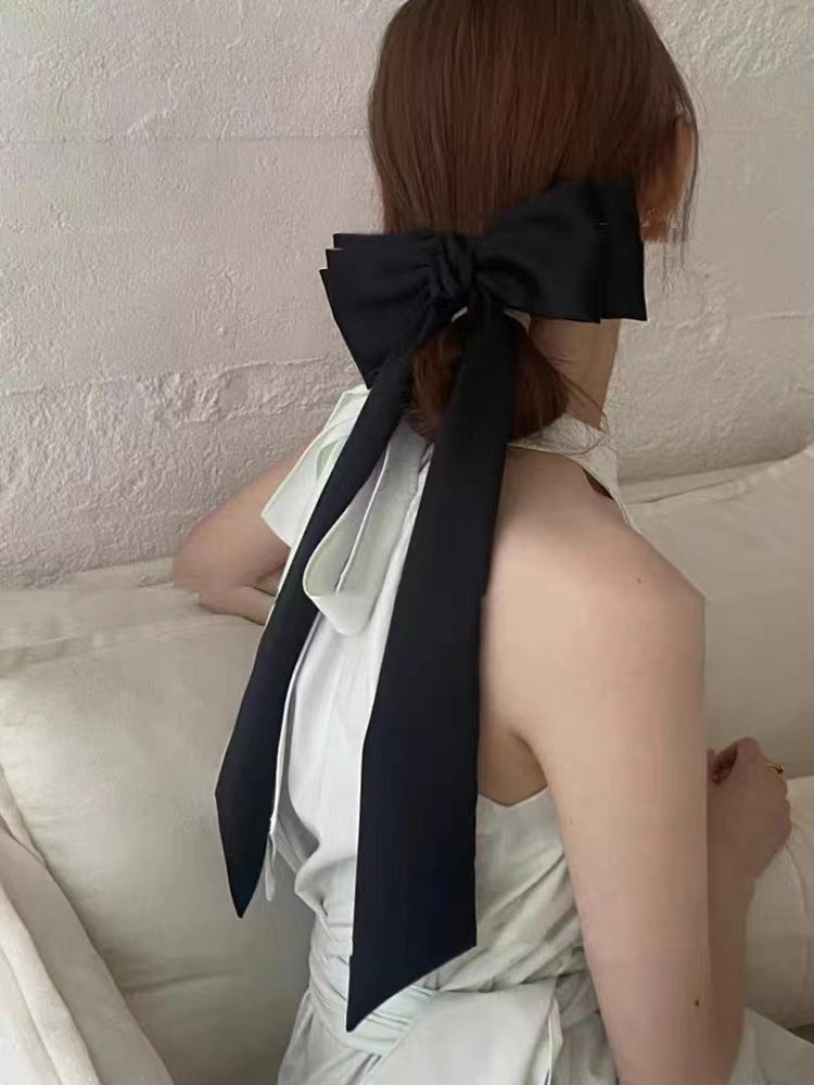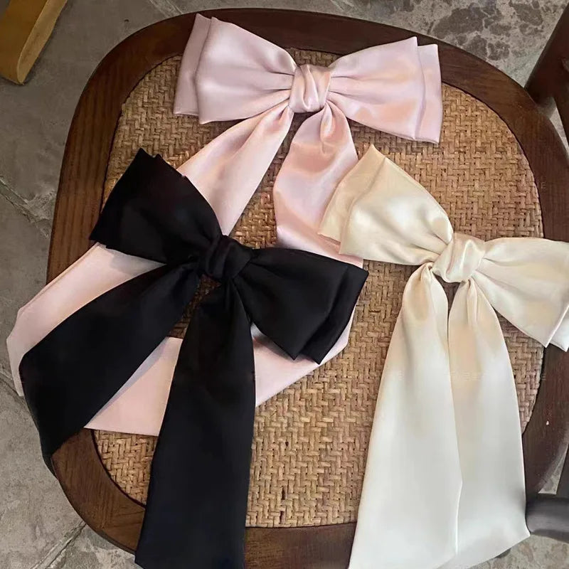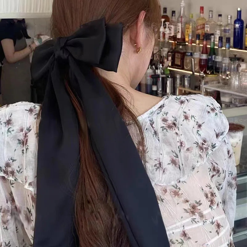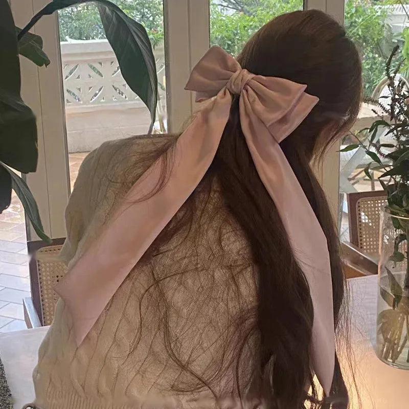 🎀 Chic Korean-Inspired Design – Long flowing satin bow for an elegant look